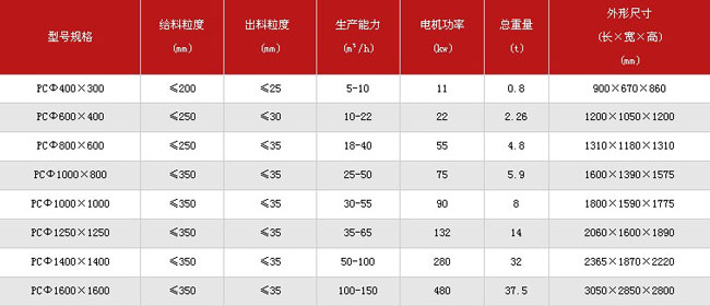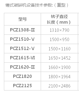 錘式破碎機技術(shù)參數(shù)