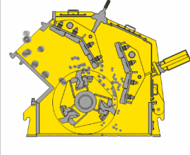 物料進入破碎機后,先受到隨轉子高速旋轉的錘頭的沖擊作用而破碎,被破碎的物料同時從錘頭處獲得動能,高速度地沖向破碎板。受到次破碎,反復進行破碎,受到錘頭的剪切、擠壓、研磨以及物料與物料之間的相互作用進一步破碎,終從出料口排出。