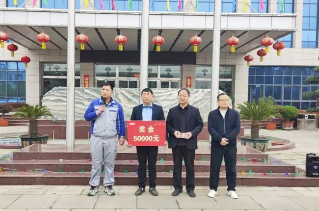 為了進一步鼓勵廣大鼎力員工積創新,推動車間生產降本增效,提升礦山設備成品質量,3月20日晨會期間,中譽鼎力總經理楊乾代表公司對“磨床技改”項目團隊獎勵現金50000元,毛寶華、王衛生、桂禮明作為“技改先鋒”代表領獎。