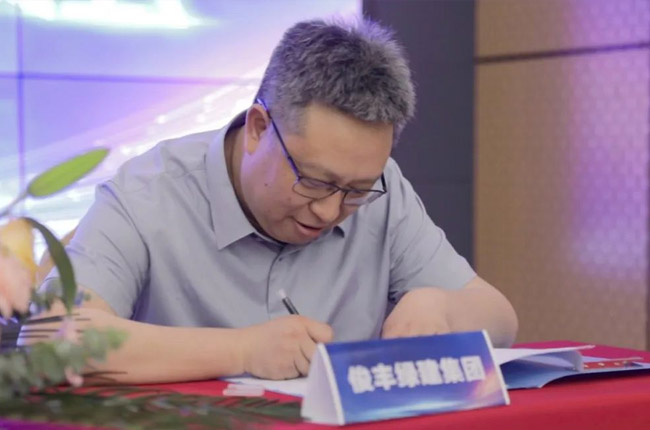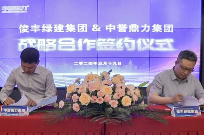 簽約儀式上,荊門俊豐綠建集團黨委書記、董事長胡錕與中譽鼎力集團董事長張治民代表雙方正式簽訂《戰略合作協議》。