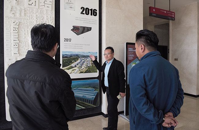 考察團(tuán)先來到中譽(yù)鼎力智能裝備有限公司新廠區(qū),先后了解了中譽(yù)鼎力企業(yè)發(fā)展歷程、五位一體循環(huán)建材產(chǎn)業(yè)園項(xiàng)目、智能化一體生產(chǎn)車間和智能礦山管理系統(tǒng)。