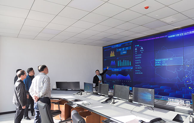 ▲參觀項(xiàng)目中控室 了解中譽(yù)鼎力礦山生產(chǎn)管理系統(tǒng)
