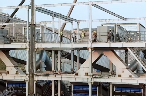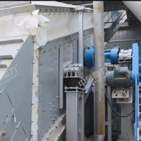 整個組裝式篩分結構由振動篩主機、振動篩框架、樓體鋼構、振動篩附件、電動提升機構、巡檢廊道等部分組成,振動篩由振動篩框架支撐,振動篩附件由樓體鋼構支撐,樓體鋼構和振動篩附件不參與振動,使樓體鋼構的強度和穩定性更高。