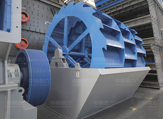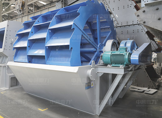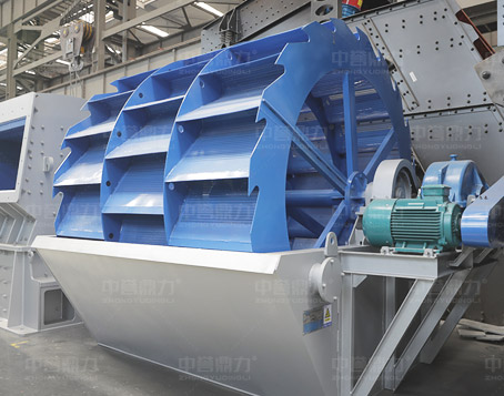 洗砂機(jī)工作時(shí),電機(jī)通過(guò)三角帶、減速機(jī)、齒輪減速后帶動(dòng)葉輪緩慢轉(zhuǎn)動(dòng),砂石由給料槽進(jìn)入洗槽中,在葉輪的帶動(dòng)下翻滾,并互相研磨,除去覆蓋砂石表面的雜質(zhì),同時(shí)破壞包覆砂粒的水汽層,以利于脫水;同時(shí)加水,形成強(qiáng)大水流,及時(shí)將雜質(zhì)及比重小的異物帶走,并從溢出口洗槽排出,完成清洗作用。干凈的砂石由葉片帶走,后砂石從旋轉(zhuǎn)的葉輪倒入出料槽,完成砂石的清洗作用。