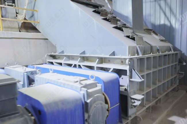 1、原料處理:共用歐版顎破初碎后進(jìn)入中轉(zhuǎn)倉(cāng)