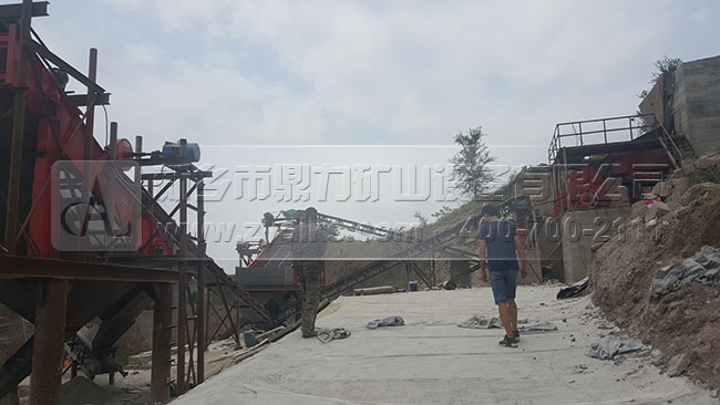 從生產現場我們可以看到,此條日產1500噸砂石料生產線部都是選用我們公司的設備,原料和成品料之間部都是用皮帶輸送機傳輸的,生產流程是流暢,可以自動化的將成品料生產出來,減少了使用額外附加設備的幾率。