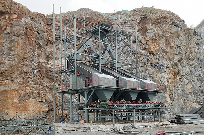 2)對于生產能力較大時(>時產250噸),粗碎與次破碎之間需置中轉料堆,一是使次破碎機械能夠滿負荷運行,提升工作效率,二是以避免機器維護、檢修等時期時能保持正常生產。